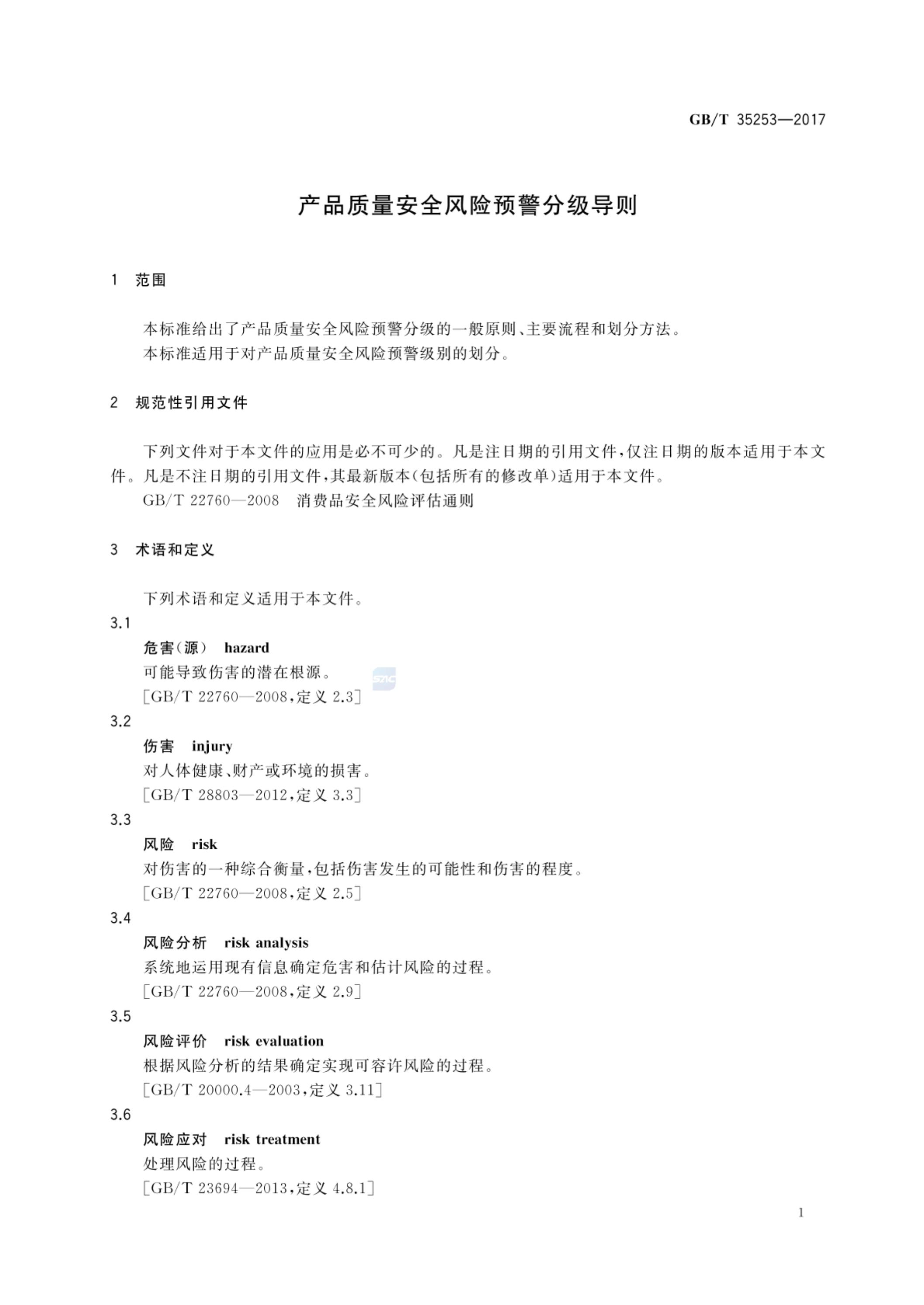 GB/T 35253-2017 產(chǎn)品質(zhì)量安全風(fēng)險(xiǎn)預(yù)警分級(jí)導(dǎo)則