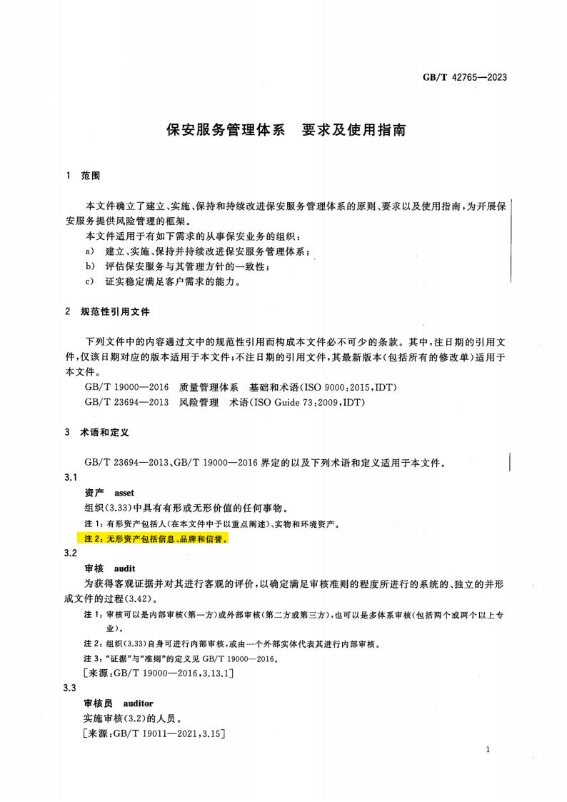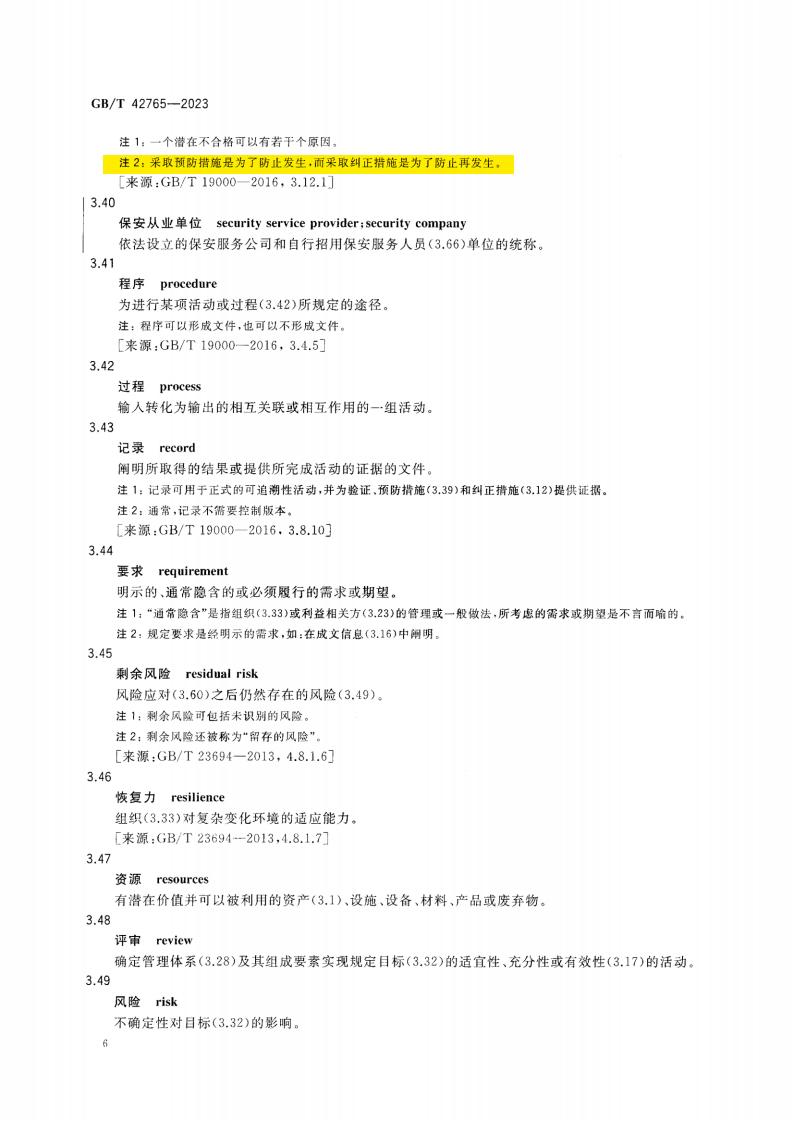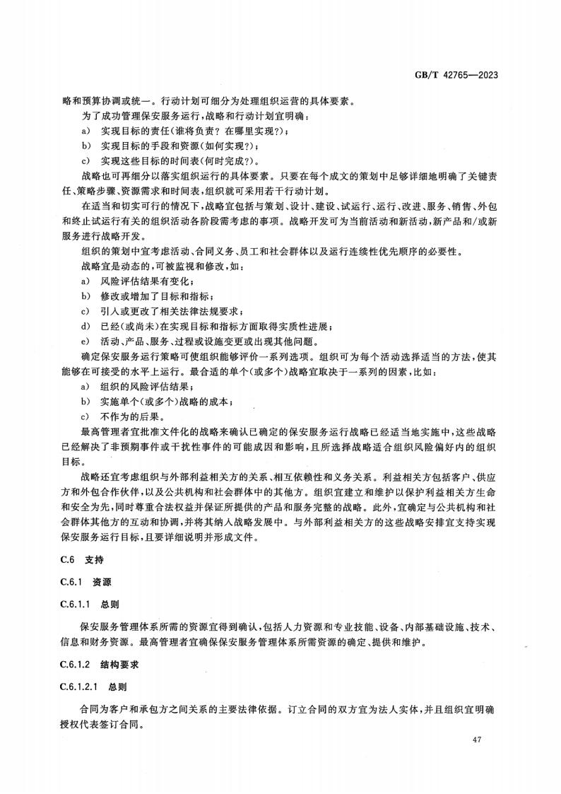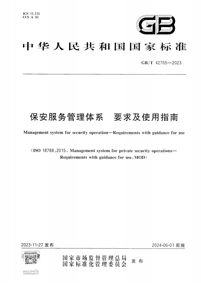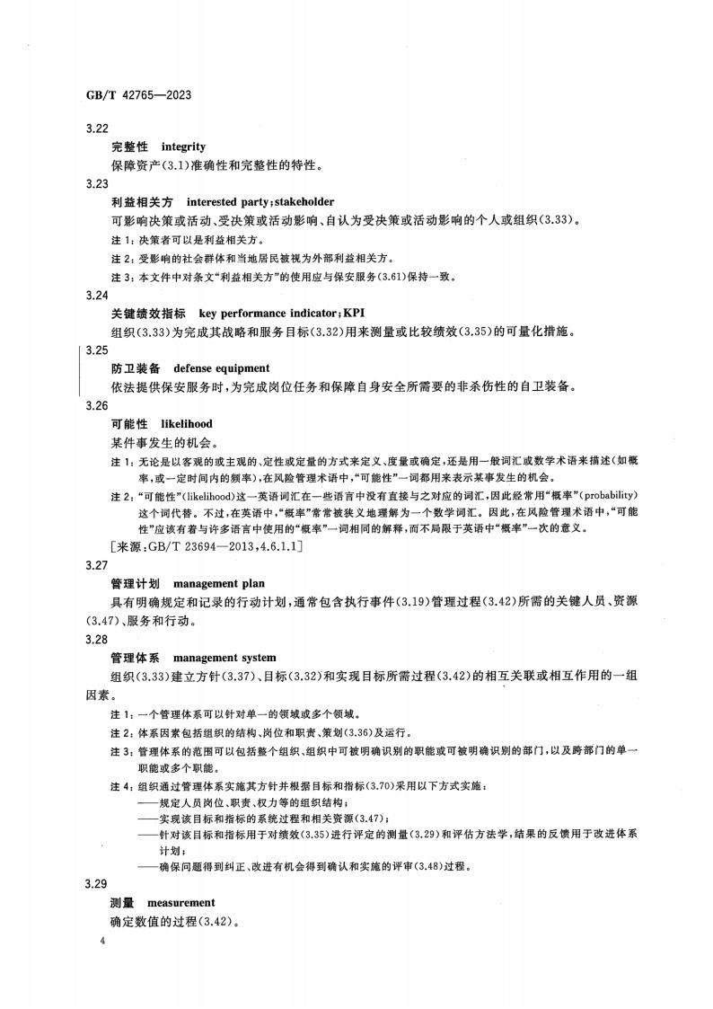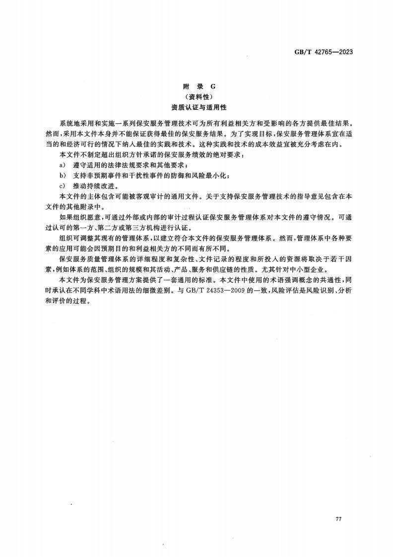 GB/T 42765-2023保安服務(wù)管理體系要求及使用指南